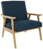 This exquisite Mid-Century modern armchair showcases a stunning brushed finish on its solid wood frame. It is characterized by a sleek cantilever design that effortlessly combines style and stability. The chair features generously thickly padded cushions for both the seat and back, ensuring unparalleled comfort. Available in four eye-catching fabric options, this versatile piece is perfect for enhancing the aesthetic of a living room, study, or guest room when paired as accent chairs.