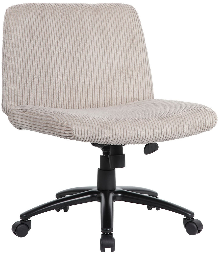 Crafted with a cushioned seat covered in plush Beige Corduroy fabric, the chair promises all-day comfort, providing a soft yet supportive experience. The thoughtfully designed pneumatic gas lift allows for easy and precise height adjustment, ensuring you can find your perfect fit and promoting healthier posture and ergonomics while you work.