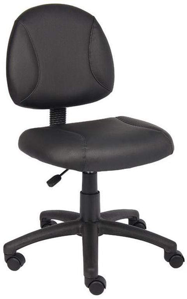 This affordable posture chair from Boss is upholstered with comfortable LeatherPlus, making it an attractive option for those who spend extended periods sitting. The thickly padded waterfall seat helps reduce stress on your legs, while the built-in lumbar support promotes correct spinal alignment, potentially reducing backaches and fatigue.Office Chair Specs: