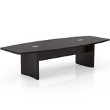 The Aberdeen Series conference tables include 1 5/8" thick work surface and a hollow core construction. Boat shaped conference tables have two standards grommets. Boat-shaped conference tables accept power module for power and data access to operate computers and presentation equipment during meetings. Conference table legs have cable chimney for concealed cable management from surface to floor. Tops larger than 96" have multi-piece top surfaces connected via steel cam post and steel connecting plates.