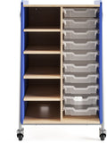 - Helps you stay organized with 10, 3-inch totes in one column and four adjustable shelves in the other.