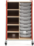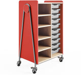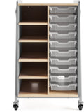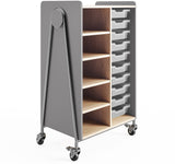 Introducing the Whiffle rolling storage solutions - the perfect solution for all your mobile storage needs. This versatile double-column office rolling cart features ten removable tote drawers, each measuring 3 inches tall, and four open shelving cubbies. The top surface is made of high-pressure laminate (HPL), making it a tough, durable work surface. The rest of the structure is made of Thermal-Fused Laminate (TFL), ensuring that this cart will withstand the test of time.
