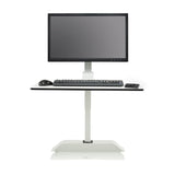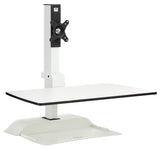 - Versatile remote control surface that rises to allow user to adjust to sit or stand while working and includes one monitor arm