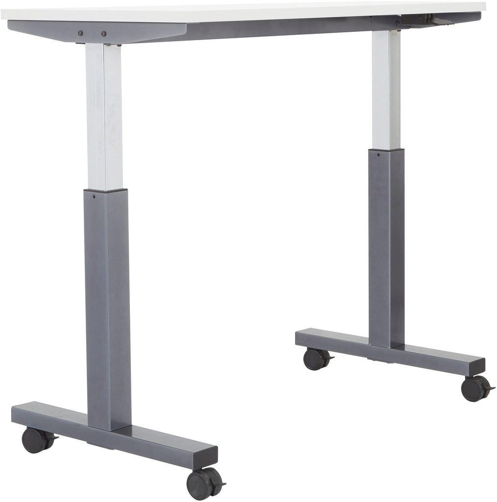 These Office Star adjustable tables are a remarkably perfect, simple solution to versatility and functionality. Stay in motion throughout the workday quickly and seamlessly with a surface that can be adjusted with one touch on its easy-reach lever. Stand and work with your tabletop waist-high, or study sitting down with your books and materials within an arm's reach. With locking black casters, the table glides about easily for relocation when performing collaborative work or simply for sliding out of the way when no longer needed. It's a reliable function in motion for an excellent value!