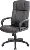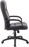 This executive high back chair is elegantly upholstered with extremely soft and durable Caressoft vinyl. It features integrated lumbar support and padded armrests decorated in comfortable CaressoftPlus upholstery. Additional features include an upright locking position, adjustable tilt tension control, and pneumatic gas lift seat height adjustment for a seat height that extends from 20” to 23.5”. All of this sits atop a sturdy 27” nylon base with five hooded double-wheel casters for exemplary stability and maximum mobility.