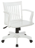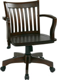 Long-lasting, fashionable and multipurpose are the top characteristics of this wood bankers chair by Office star. This versatile chair looks striking in a medium oak, espresso or white finish. A high level of comfort is ensured with its ergonomically designed seat, back and arms. Fine-tune the seat height to your liking using the lever. This swivel chair also moves with casters.