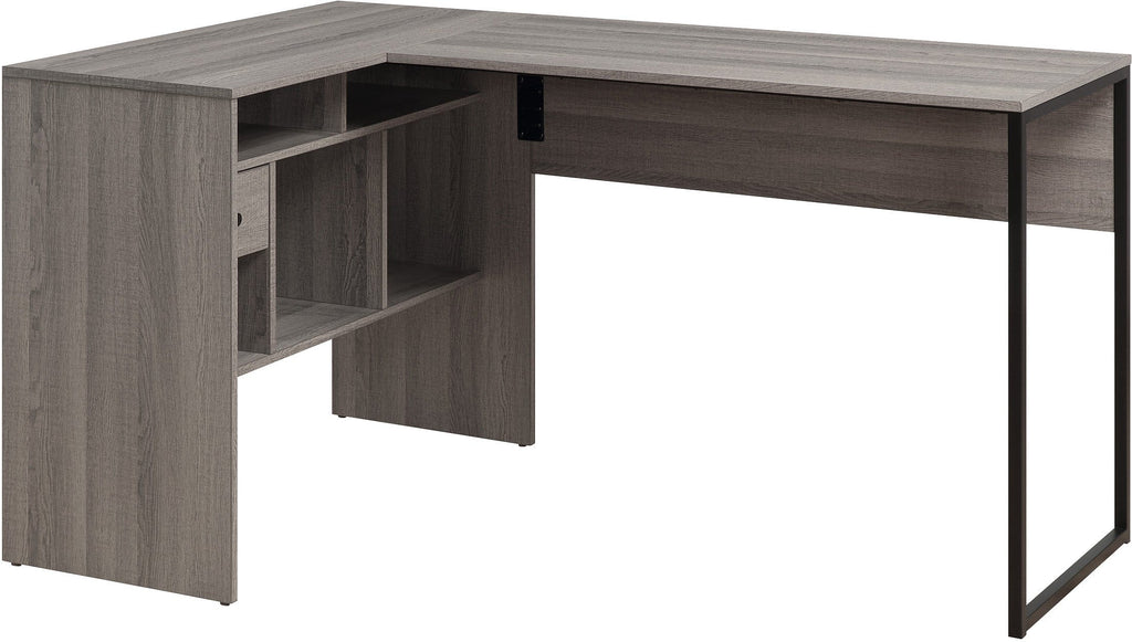 The Hagney Lane desk has an expansive L-shaped design and modern style which makes it an ideal option for your home office. The sturdy metal frame and Farm Oak finish give it a durable and stylish look. It also includes an accessory drawer and under-desk storage to keep your bins, books, and office supplies organized and accessible.