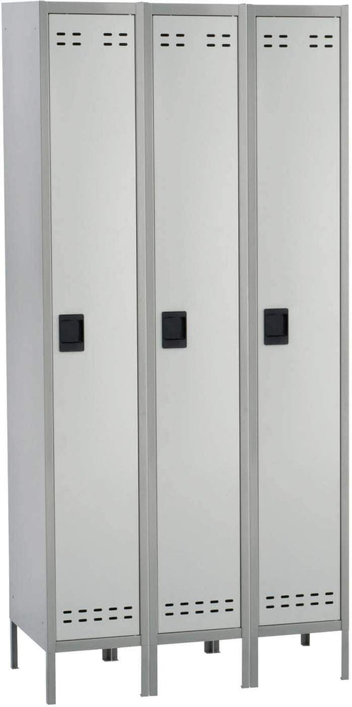 Built of heavy gauge all-steel construction, these sturdy Safco single-tier 3-column lockers can be used as stand alones or linked together. Each locker comes in a two-tone gray finish with recessed panel and padlock provision for maximum security. Not just for gyms, these versatile, space-efficient lockers are ideal for cellars, basements, even the kids room.