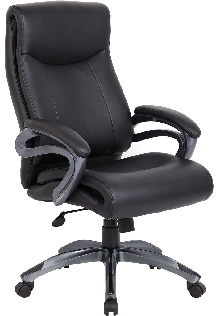 This high back executive home office chair from Lorell features eco-friendly bonded leather upholstery that is soft yet durable for years of comfortable office use.