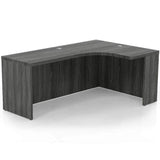 The Aberdeen Series extended corner includes 1 5/8" thick work surface, full height, vertical grain and a modesty panel. The modesty panel is recessed 3" for outlet clearance on desk side and flush on return side. Along with two standard grommets in surface a mouse hole is in the modesty panel (desk side) for cable pass through.