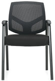 Go from plain-Jane visitor room settings to fabulously functional with this Offices To Go Contemporary Mesh Back Guest Chair! This beauty features a sleek black mesh back and breathable mesh fabric seat that are sure to keep your guests comfortable for hours. With its rugged black powder coated steel frame, polyurethane armrests, and 250 lb. weight capacity, this chair will last for years to come. This model is a matching companion chair to models OTG11514B, OTG11516B, and OTG11769B.