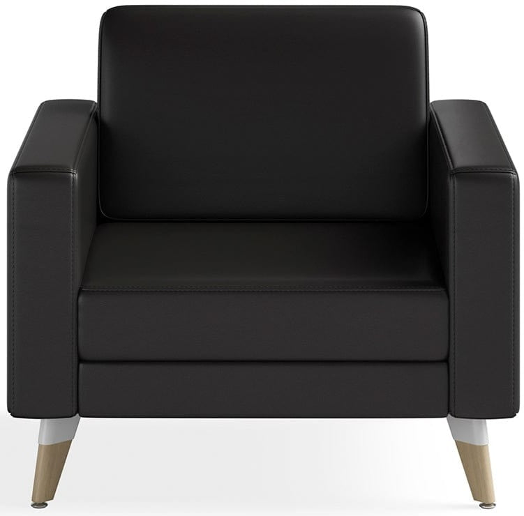 Welcome your colleagues and encourage them to socialize by offering them a comfortable seat on the Resi Lounge Chair. This chair has a durable and versatile design that complements other Resi furnishings. With vinyl options in black, gray, and cognac and matching legs and feet, this chair can help you create a fulfilling and collaborative work experience.