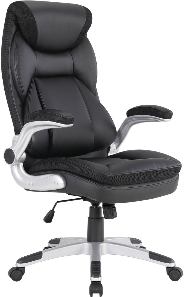 This Executive Bonded Leather Office Chair is a stylish and functional addition to any office. It features a thick, padded, contoured seat and back with built-in lumbar support for maximum comfort and support. The chair is equipped with a heavy-duty coated base with black end caps and dual-wheel carpet casters for easy mobility. With padded flip arms, locking tilt control, adjustable tilt tension, and one-touch pneumatic seat height adjustment, this chair is the perfect ergonomic and aesthetic update for any workspace.