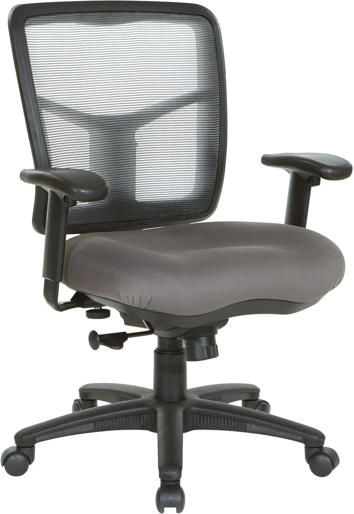 Experience enhanced productivity and comfort with the Mesh Back Chair with Fabric Seat from Pro-Line II®. The chair comes with a Breathable Air Mist mesh back that provides continuous support, keeping you cool and comfortable throughout the day. The FreeFlex II® fabric seat is designed to provide cushioned comfort as you organize your day. This chair is adjustable to fit your unique needs, with features like one-touch pneumatic seat height adjustment, 2-to-1 synchro tilt control with adjustable tilt tension, ratchet-back height adjustment, and height-adjustable arms. The heavy-duty nylon base with dual-wheel carpet casters ensures that you can move around your workspace with ease. This smart chair is perfect for anyone looking for a comfortable and adjustable work chair.