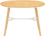 - Legs and bases are solid wood (Light Maple) with a natural finish