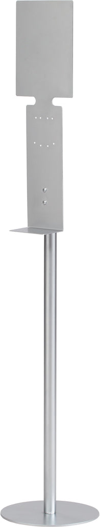 Easily make germ-reducing solutions more accessible to workers, customers, clients and guests with the help of Safco's Hand Sanitizer Stand. Made from sturdy steel with a durable powder coat finish, the stand combines with your favorite compatible touch-free hand sanitizer dispenser (not included) to create a simple to use hand sanitizer station that's easy to move or relocate as needed. Attach a compatible touch-free dispenser (not included) using the pre-drilled holes on the stand's mounting plate or simply affix the unit using double-sided tape (mounting hardware and tape note included). A convenient fixed tray sits below the mounting plate to help prevent small drips of hand sanitizer falling onto the stand's sturdy round base. Above the dispenser mount area, the stand's 8.5" x 11" signage plate lets you use magnets or tape to display important messages or post relevant notices. Assembly required. Dispenser not included.
