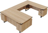 - Set includes Desk, universal Bridge, Credenza and two Pedestals