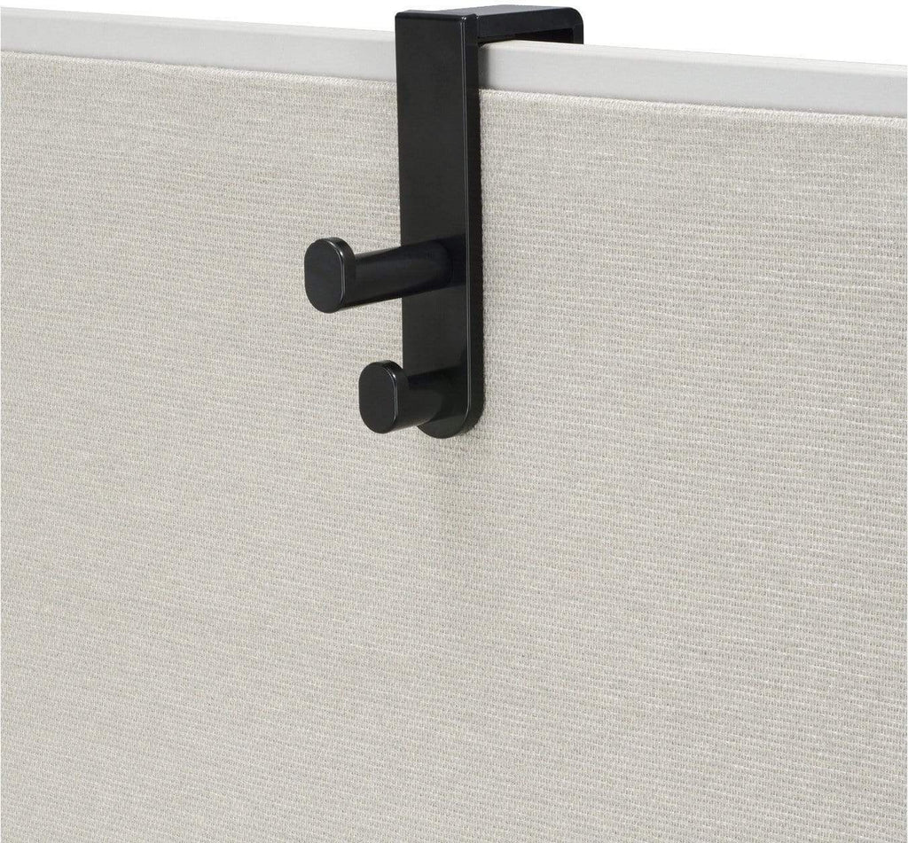 The Over-the-Panel Double Hook is a hanging system featuring plastic coat hooks and reinforced steel back plates. Fits panels from 1 ½" to 3 ¼" and doors up to 1 ¾". The mounting hardware is included and concealed within hook. Extended length over the door hook comes with two coordinating hangers.
