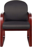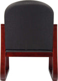 Our wood reception chair is perfect for any office, waiting room, conference room, or event. It features a molded wood frame and mahogany finish for a sleek look that’s as alluring as it is professional. The extra-thick seat and back cushions enhance its aesthetic and provide a comfortable sitting experience for all your guests and visitors. It is available in either black or grey commercial-grade fabric.
