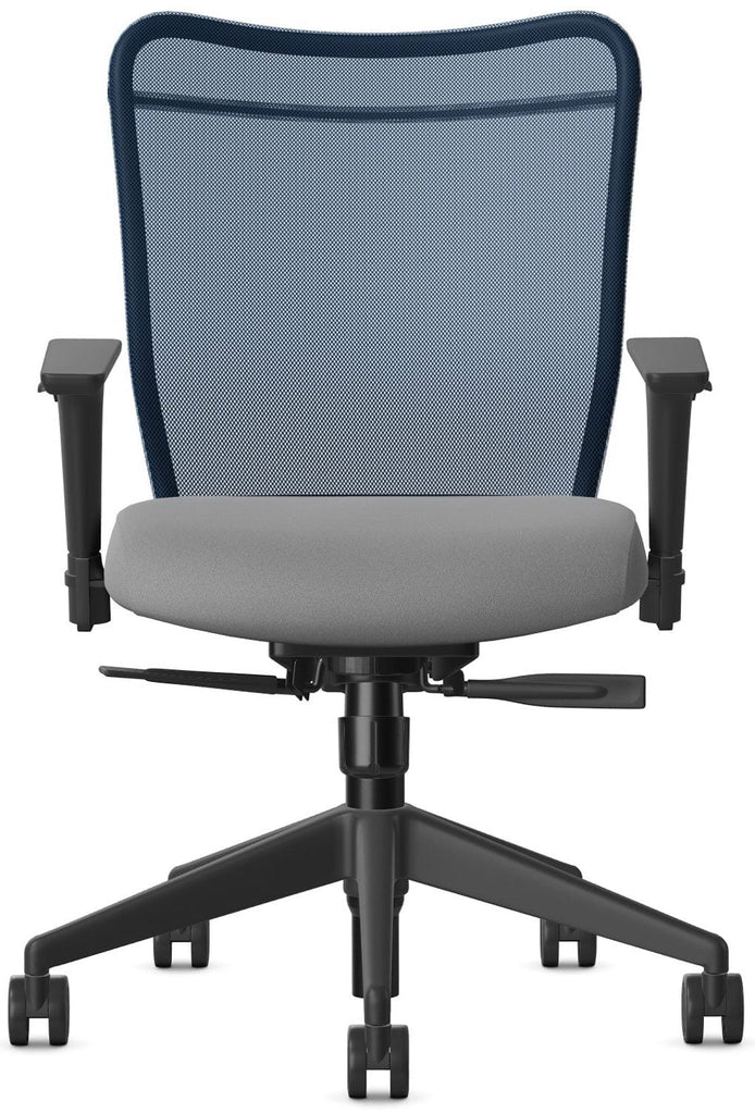 The Inertia mesh back task chair from Allseating was designed to deliver an unmatched level of ergonomic support and comfort. This chair features a ventilating mesh backrest with deep contours and a heavily padded and contoured waterfall edge seat to provide enhanced comfort throughout the day. The chair offers pneumatic seat height adjustment, tilt adjustment with lock and tension adjustment, and wide task arms that can be adjusted for height. The chair is supported by a heavy-duty nylon base on carpet casters with dual wheels to provide comfort and support for up to 325 pounds. The chair comes with a ten-year warranty, your choice of upholstery and colors, with options for different casters.