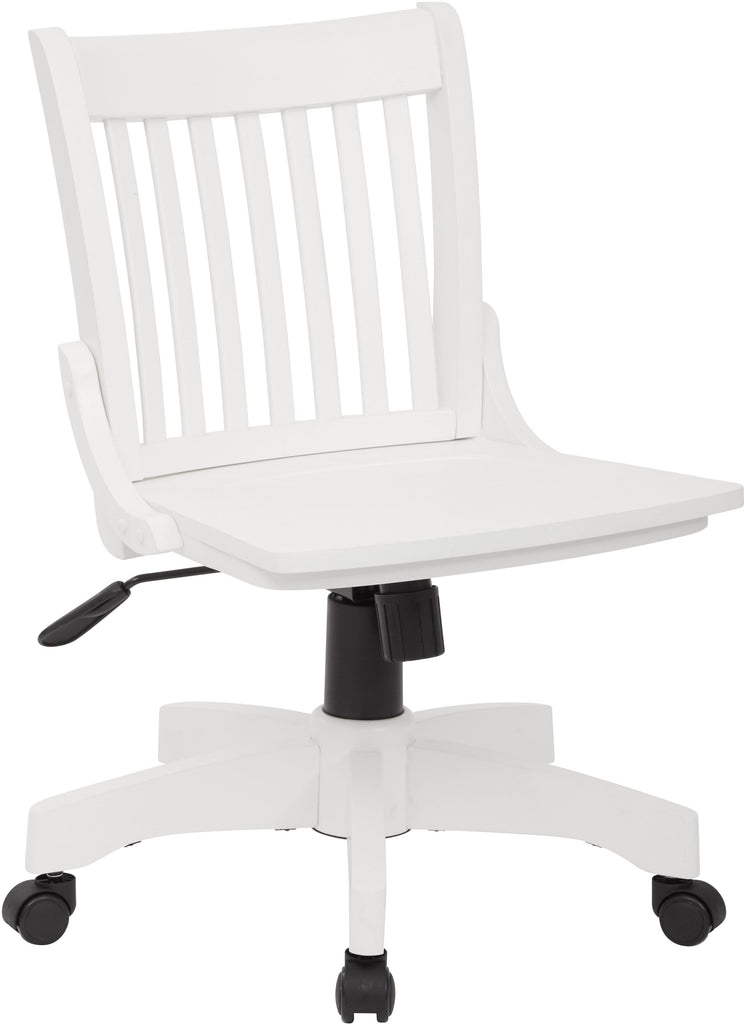 This armless bankers chair from Office Star Products is ideal for any country or traditional institution style room or office setting. The Deluxe Armless Wood Bankers Desk Chair with Wood Seat affords you unadulterated comfort while working or resting.