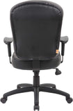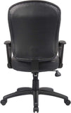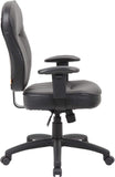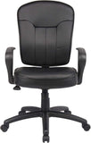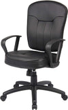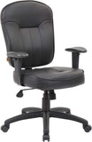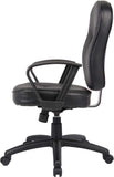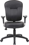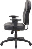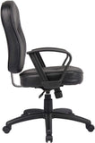 This mid-back leather task chair with extra-large seat and back cushions provides comfort during extended periods of work. The beautifully upholstered Black LeatherPlus (leather and polyurethane) provides extra softness and durability. The Loop Arms make for comfortable and natural armrests. The large 27’’ black nylon base provides added stability to the chair by spreading the load over a larger surface area. The hooded double wheel casters make it easy to move and shift directions.