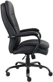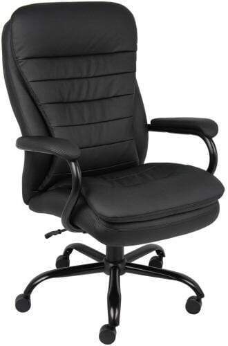 Other features include double plush, foam padded seat and backrest cushions, built in lumbar support curve, heavy duty spring tilt recline mechanism, tilt with tilt lock, tilt tension adjustment, fixed position armrests with padded arm-caps, pneumatic seat height adjustment, 360 degree swivel and a 27 inch heavy duty steel base with 3 inch oversize carpet casters. Rated for users up to 400 lbs. This heavy duty executive chair meets or exceeds ANSI/BIFMA standards.