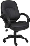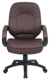 This executive conference chair, from Boss Office Products, features plush LeatherPlus upholstery available in your choice of brown or black. LeatherPlus is a urethane infused leather that is soft to the touch yet extremely durable. Other features include contoured back and seat for maximum comfort and support, thick foam padded seat and backrest cushions, waterfall seat edge, built in lumbar support curve, tilt with upright tilt lock, tilt tension adjustment, pneumatic seat height adjustment, 360 degree swivel, LeatherPlus padded loop arms and a heavy duty five star nylon base with dual wheel carpet casters. This conference chair meets or exceeds ANSI/BIFMA standards. Dimensions: Seat Size: 20"W x 19"D. Seat Height Adjustment: 19" - 22.5"H. Overall: 27"W x 28.5"D x 40"-43.5"H. Six year limited warranty from Boss. This chair normally ships within 2-3 business days from either our CA or GA warehouse.