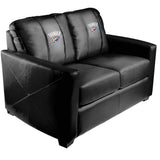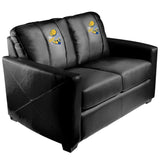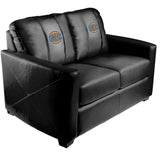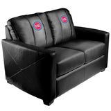 Lounge in your NBA Stationary Love Seat with a friend and enjoy cheering on your team to victory. The silver series is a perfect choice for looks, comfort and versatility. It features synthetic leather with a hardwood frame, no-sag spring suspension and high resiliency foam. Best of all the logo zips on and off of the chair for endless customization. The Love Seat comes standard with two identical logos