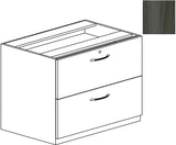 Aberdeen Series credenza lateral files slide easily under any surface. That Laterals top is unfinished. Each drawer can hold up to 150 lbs. Also includes curved metal pulls with a brushed nickel finish.