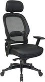 Space Seating® Black Mesh Chair with Adjustable Leather Headrest and Seat [27008]