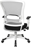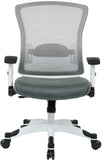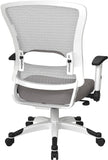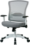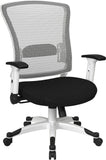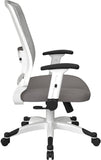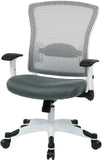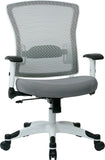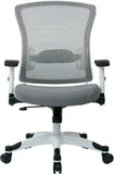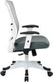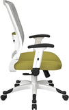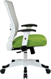 Introducing the new white frame manager's chair with a mesh back and padded mesh seat by Space Seating. This cutting-edge seating is designed to provide ultimate comfort and support. The mesh back and customizable lumbar support conform to your body and wick away moisture. Additionally, the cushioned mesh seat is available in 12 colors, so you can choose one that matches your personal style.