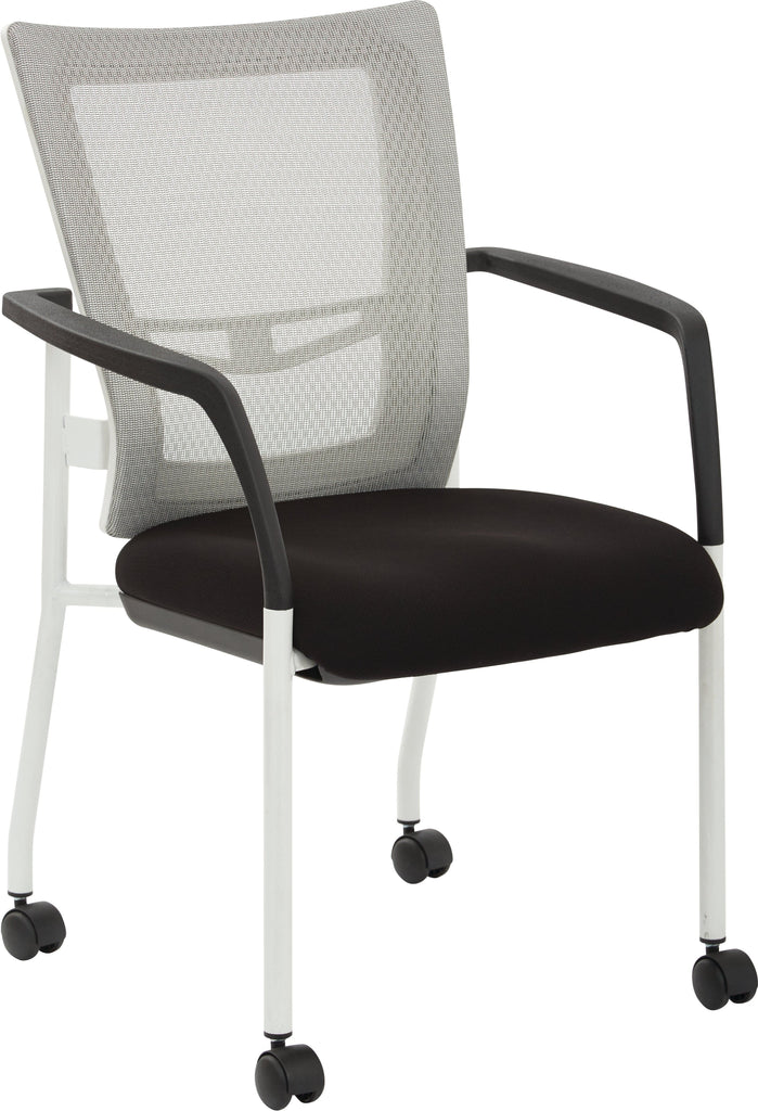 Looking for comfortable and attractive seating options for your office, waiting reception area, or conference room? Look no further than the ProGrid® Visitor’s Chair, which features a tough white frame and molded arms. Your guests will appreciate the generously padded seat and breathable back with built-in lumbar support and the contoured armrests that will keep them at ease. With custom fabric options, you can complement your existing home office décor. The dual-wheel carpet casters allow you to create multi-use seating options quickly and easily and then roll these chairs back into place.