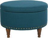 Introducing the Alloway Storage Ottoman by Avenue Six - a sophisticated and luxurious addition to your living space. This ottoman is designed to elegantly store your personal belongings, making it a convenient and tasteful piece of furniture. Enhansed with nail head details and supported by sturdy solid wood legs, it exudes refined elegance. Available in a selection of four fabrics and three faux leather options, this ottoman allows you to elevate your home decor with both style and functionality.
