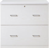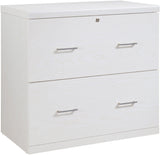 Stay organized and keep your documents secure with our 2-drawer locking lateral file cabinet. This cabinet is designed with dual drawer pulls and euro-style easy glide hardware, which makes opening and closing the double width drawers effortless. It can accommodate both legal and letter-size files, and the top drawer has a locking mechanism for added security. The assembly process is simplified with Lockdowel™ fasteners, which are invisible and create a tight joint for a finished look. The Lockdowel™ fastening system is designed to make assembly quick and sturdy every time by simply sliding components into place.