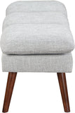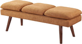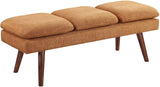 Looking to add a touch of modern elegance to your entryway, dining room, or guest room? Our versatile 54" Mid-Century Modern upholstered bench is just what you need. It's perfect for defining your entryway, giving a finishing touch to a cozy guest room, and adding extra seating in your dining room. The bench features a trendy tapered leg made of solid wood and three attached cushions that create a sophisticated design that can fit perfectly in any part of your home.