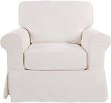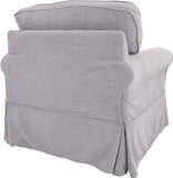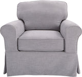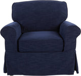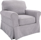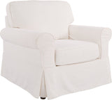 Transform your home into a perfect Cottage retreat where you can unwind in comfort and style with our Ashton Slipcover Armchair. This armchair is designed with classic rolled arms, tailored piping, and a flirty kick pleat skirt that exude a relaxed and inviting atmosphere. You can choose to adorn your living room with the complete sofa, loveseat, and armchair collection, or add a pair of armchairs to your sunny reading nook, or even a single, standout sofa to your family room. The classic design is versatile enough to complement any interior style, while the soft fabric slipcovers are easily removable and washable, ensuring that maintenance is a breeze. The deep 26” box cushions are reversible, built with high-resiliency foam, wrapped in thick poly-fiber, and set on sinuous spring supports for long-lasting durability. The solid wood legs and corner block construction add to the high-quality integrity of these thoughtfully designed furnishings.