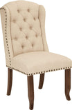 Get ready for your dinner party! Invite your family and friends to celebrate holidays, birthdays, and joyful gatherings with these classic dining chairs. The Jessica tufted wing dining chair by Avenue Six features a timeless design with a 12-button tufted back, elegant nailhead trim, and a stylish winged back that adds modern sophistication. The solid wood legs ensure lasting durability and support. Transform your dining room into your dream space with these beautiful chairs.