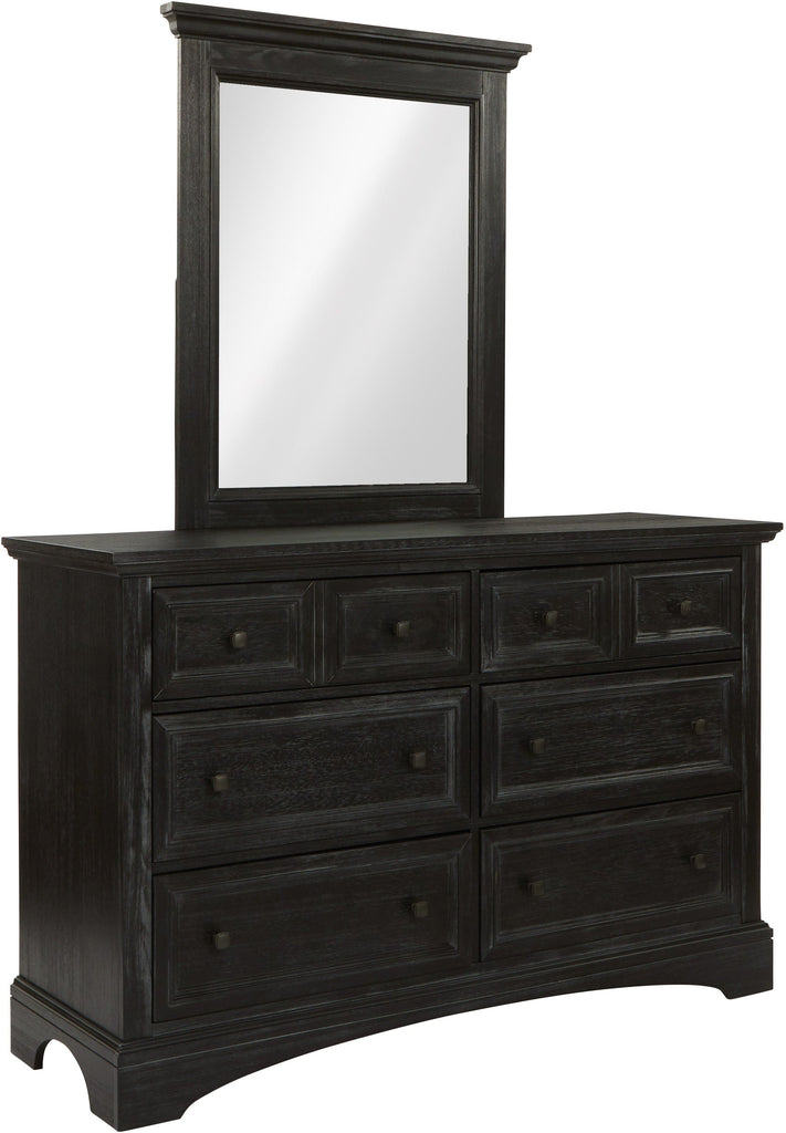 Inspired by the farmhouse look, this transitional design fits a variety of décor. The overcoat replicates a slightly weathered look into deep grained wood veneer. This piece is made of mahogany with albizia wood veneers under a six-step finishing process. The beveled glass mirror is beautifully set on a matching wood frame. This piece can be attached to the -20B six drawer dresser with included supports, or hung on the wall.