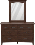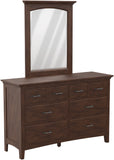 The Modern Mission Collection is an updated version of the traditional Craftsman design. The renewed look features enhanced darker hues in the finish, with a deep oak grain look and feel. The attractive beveled mirror comes equipped with a matching wood frame that complements the collection's vintage oak finish. The mirror can be easily attached to the six-drawer dresser model (BP-4201-020K) using the included supports, or can also be hung on a wall for customizable variation.