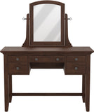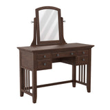 The Modern Mission Collection offers an updated version of the traditional Craftsman design. The new look features deep darker hues in the finish, along with a rich oak grain look and feel. The five-step finishing process is beautifully complemented by the new gunmetal hardware. The three-drawer vanity is perfect for storing your hair and makeup tools. The 44” wide table top provides ample working space, and the beveled mirror included in the set swivels 360 degrees for adjustability. Start your day on the right foot with the Modern Mission vanity and mirror set, ensuring your morning preparations are comfortable and convenient.