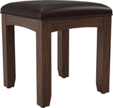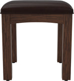 The Modern Mission Collection is a contemporary take on the classic Craftsman design. The renewed appearance features darker shades in the finish and a deep oak grain look and texture. The vanity bench is crafted from solid wood and comes with a soft cushioned vinyl seat for added comfort. You can pair this bench with a matching vanity mirror combo to complete your daily grooming routine.