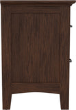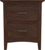 The Modern Mission Collection is an updated version of the traditional Craftsman design. The renewed look features enhanced darker hues in the finish, along with a deep oak grain look and feel. The five-step finishing process is perfectly complemented by the beauty of the new gunmetal hardware. The nightstand comes with two deep storage drawers that offer ample space for storing clothing and accessories. Both drawers slide easily on metal side glides and are accompanied by a pull-out tray that securely holds beverages. With its sleek design, the Modern Mission nightstand provides a safe and stylish haven for your most valuable possessions.