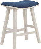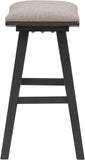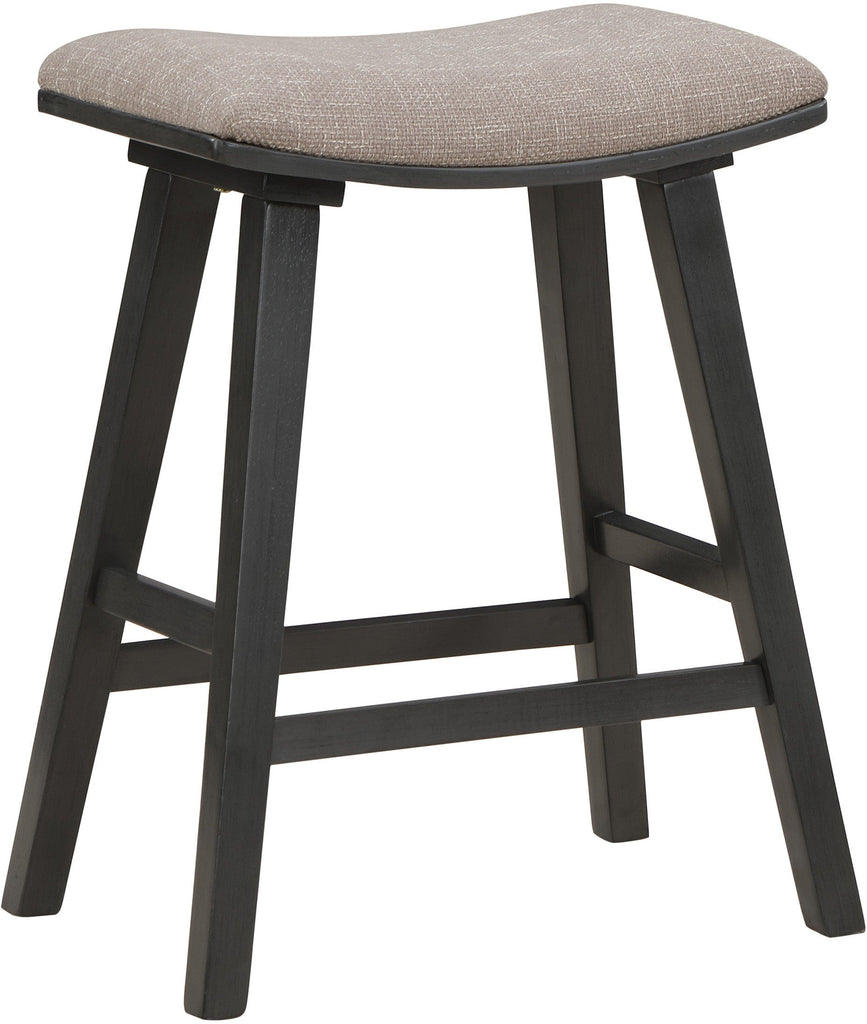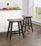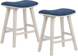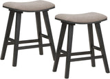 Looking to add comfort and style to your space? Check out our 24" counter height stools, sold in a convenient 2-pack. These stools feature a padded saddle seat design that not only offers comfortable sitting but also exceptional visual appeal. The solid wood legs and 100% polyester fabric seat provide long-lasting beauty and durability, making these stools a great investment for your home.