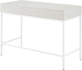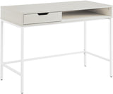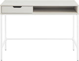 The Contempo Desk is perfect for your busy home office, offering a spacious work surface of 40" x 19". The sturdy steel frame of the desk boasts refined lines, making it a stylish focal point in your room. You can keep your workspace organized and tidy with the desktop drawer and under the desktop stow-away shelf that provides key storage options. The desk is available in two options: White laminate with a white metal frame, or brown woodgrain laminate with a black metal frame. Please note that assembly is required.