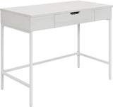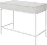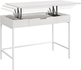Introducing the Contempo Sit-To-Stand adjustable height desk - the perfect solution for your workspace. Our Patent-pending Work Smart® Lift mechanism locks into place, providing just the right desktop elevation and offers a soft close for safe use. The desk has three height positions to choose from - the lowest one is great for a classic desk height, the mid-position is perfect for projects and drawing, and the upper height is ideal for standing. Additionally, the desk comes with a top drawer for storing your supplies, and more integrated interior storage to keep your home office tidy and organized. The woodgrain embossed surface is easy to clean with just a wipe, ensuring your workspace always looks modern and organized. Assembly is required, but the process is simple and easy to follow.