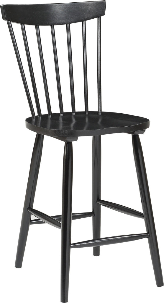 Introducing our classic Eagle Ridge Windsor style 26” Counter Bar Stool, perfect for adding a touch of charm to any kitchen. Finished in a beautiful black or white finish with a natural wood seat, this counter-height bar stool is sure to complement any kitchen counter peninsula or kitchen island, providing a contemporary and trendy feel. Made from solid wood, this chair boasts seven spindles that join the curved top rail to form a truly comfortable chair with heirloom qualities. Additionally, elegant tapered legs, a footrest, and a saddle seat complete this time-tested design. The product will arrive at your doorstep with simple and easy-to-follow assembly instructions.