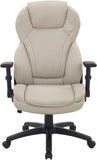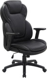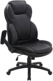 This office chair features a high back design with bonded leather upholstery, providing both comfort and style. The seat and backrest are padded and contoured to offer lumbar support, ensuring a comfortable seating experience. The chair is equipped with a heavy-duty nylon base and dual-wheel carpet casters, allowing for easy mobility. It also comes with height-adjustable flip arms, locking tilt control with adjustable tilt tension, and one-touch pneumatic seat height adjustment, providing a customizable seating experience. This chair is an excellent ergonomic and aesthetic addition to any workplace!