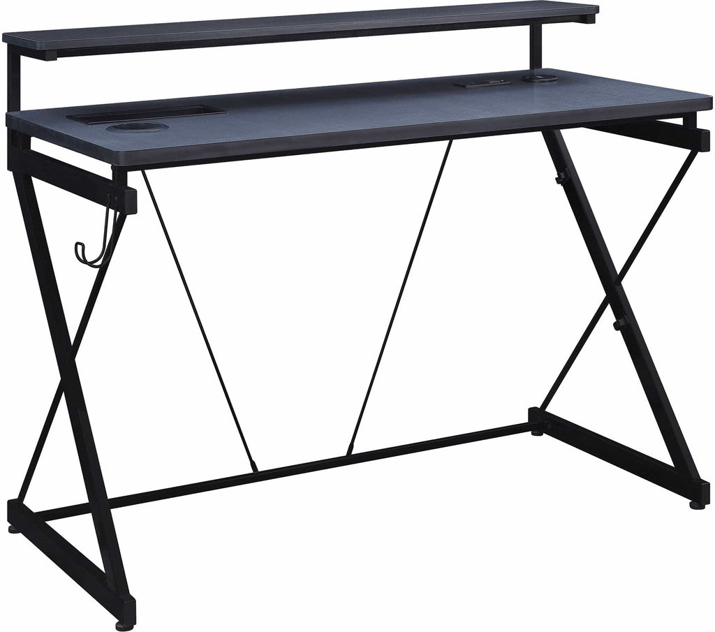 Looking for a perfect gaming desk that can also serve as a casual home office option? The Emulator Battlestation Gaming Desk is here to fulfill your needs. With a built-in power outlet, 2 dual USB charging ports, and a wireless device charging pad, you can now stay powered up while immersing yourself in gaming fun. The desk comes with remote-controlled multi-colored LED lights that optimize the excitement of gameplay. The dual monitor upper shelf positions your monitor at the optimum viewing level, leaving the main 48” wide desktop area clear for multi-functioning tasks. Additionally, the desk features an accessory hook, flush storage tray, and built-in cup holder, making it the ultimate gaming console.