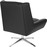Introducing our Work Smart® star base swivel chair that is perfect for both residential and commercial settings. Elevate your space, whether it's an ultra-luxury home, trendy work loft, lobby, or reception area, with this high-style, comfortable, and visually exciting chair. It's perfect for team members to collaborate or unwind in. The chair features ample contours and padding, and the aluminum star base allows for a 360º swivel so you can take in every vantage point. The faux leather material requires only a simple wipe to clean, and the sleek base is finished with an elegant square foot and black fitted floor glides to complete the drama of this beautiful seating option.